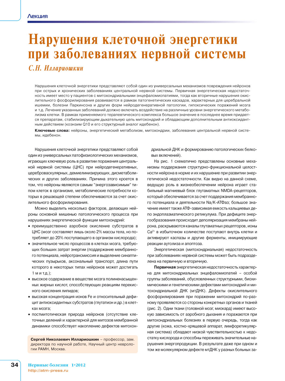 Нарушения клеточной энергетики при заболеваниях нервной системы С.Н. Иллариошкин