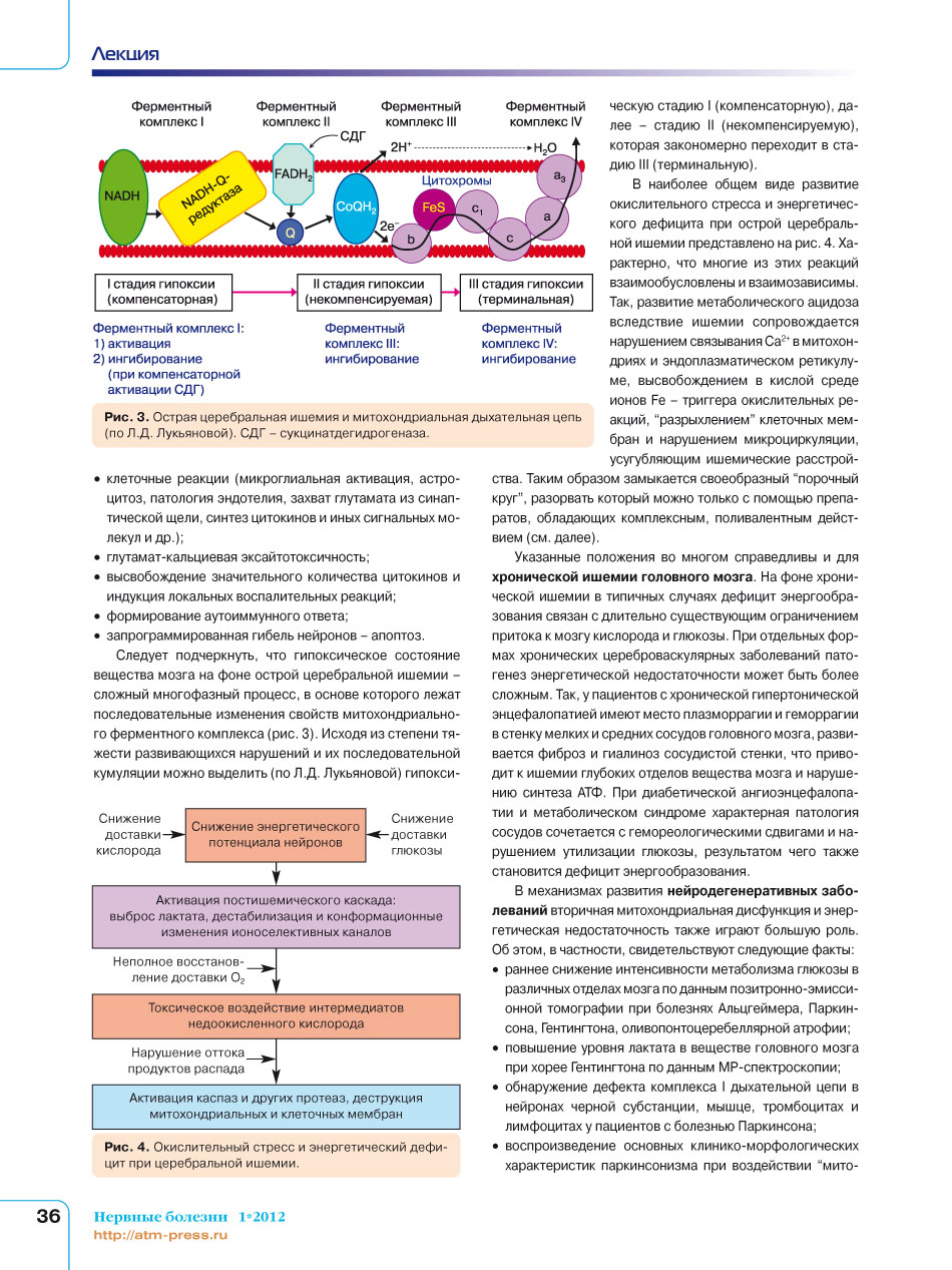 Первичная энергетическая недостаточность имеет место у пациентов с митохондриальными энцефаломиопатиями, тогда как вторичные нарушения окислительного фосфорилирования развиваются в рамках патогенетических каскадов, характерных для церебральной ишемии, болезни Паркинсона и других форм нейродегенеративной патологии, гипоксических поражений мозга и т.д