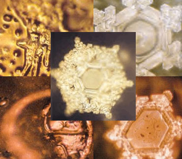 Японский ученый доктор Эмото Масару замораживал капельки воды, а затем изучал их под сильным микроскопом, имеющим встроенную фотокамеру. Его работа наглядно продемонстрировала различие в молекулярной структуре воды при ее взаимодействии с окружающей средой. Этот метод дал возможность показать, каким образом энергетические вибрации человека - мысли, слова и музыка - воздействуют на ее молекулярную структуру.