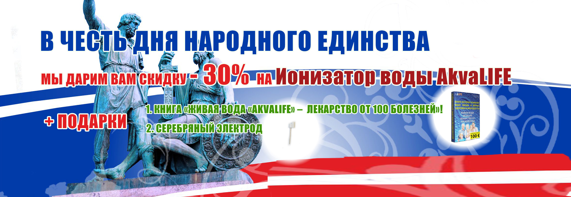В честь Дня Народного Единства приобретайте Ионизатор Воды Akvalife по специальной цене 21 000 рублей и получайте подарки!