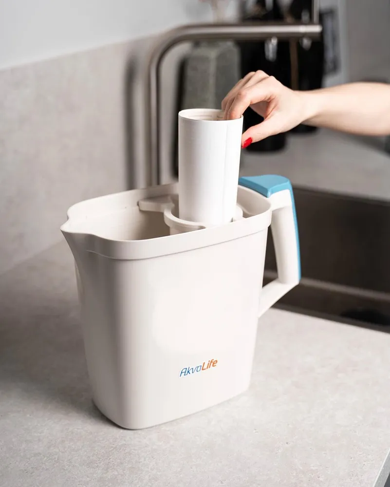 Мембранная перегородка изготовлена из нетканого материала (матовая поверхность) и покрыта специальным эко полимером (глянцевая поверхность). Перед первым применением промойте мембрану с двух сторон под проточной водой. (Данную процедуру повторять со старой мембраной не реже 1 раза в 2 недели) Инструкция по применению: 1. Оберните внутренний сосуд мембраной глянцевой стороной внутрь. 2. Вставьте внутренний сосуд с мембраной в основной стакан. (Внутренний сосуд необходимо прижать внутрь стакана, чтобы мембрана была плотно установлена) 3. Установите стакан в кувшин. Срок эксплуатации: Срок службы одной мембраны от 12 до 24 месяцев.