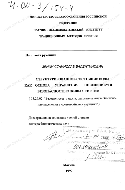 «Структурированное состояние воды как основа управления поведением и безопасностью живых систем».